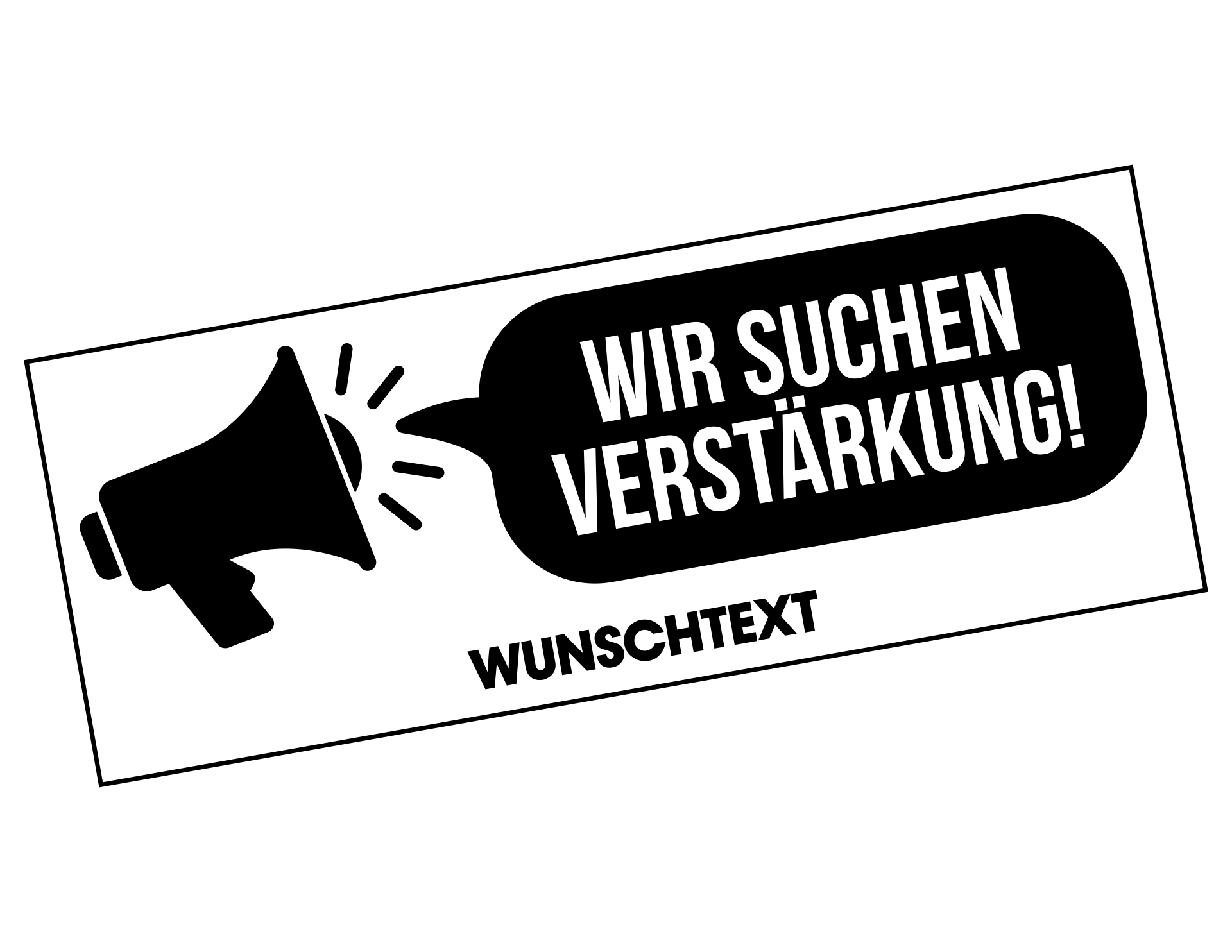 Mach Dein Gewerbe-Fahrzeug zur rollenden Jobbörse mit unserem Autoaufkleber: Wir suchen Verstärkung Megaphone. Dieses effektive Werbemittel zeigt ein auffälliges Megaphon neben der Sprechblase "Wir suchen Verstärkung" und bietet zudem einen Bereich für einen individuellen Wunschtext. Ideal für Unternehmer, die aktiv nach neuen Talenten suchen und ihre Reichweite maximieren wollen. Ein echter Blickfang, der Deine Jobangebote direkt auf die Straße bringt.