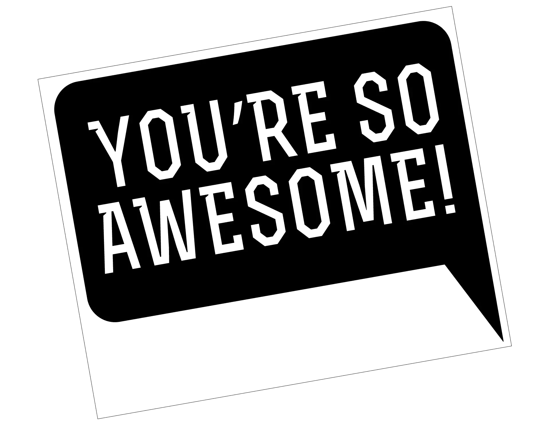 Ob als Selbstmotivation oder als Liebeserklärung an Deinen Schlitten, „You’re so awesome!“. Dieser Autoaufkleber macht das Leben schönen und sieht super aus. Mit ausgesparter Schrift und in Form einer Sprechblase.