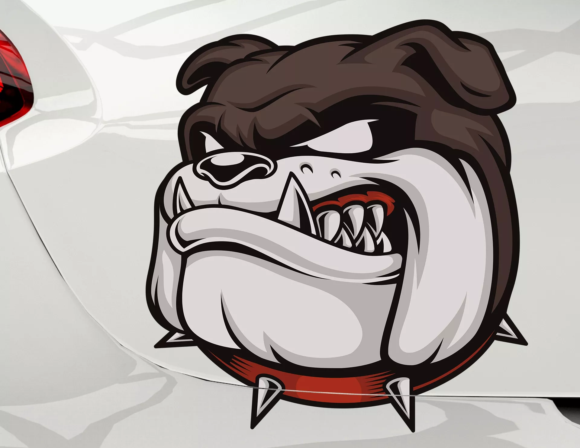 Wachsam & streng! Unser English-Bulldog Cooper hat einen entschlossen Blick, eine selbstbewusste Körperhaltung und eine robuste Statur. Er ist aufmerksam, hat ein hervorragendes Gehör, ein gutes Gefühl für sein Revier und kann zwischen bekannten und fremden Menschen unterscheiden. Genau diese Eigenschaften sind es, die ihn als idealen Wachhund auszeichnen, denn nur so bewacht und behütet er, das Haus, den Garten, das Auto und alles ihm anvertraute gut. Und mal ehrlich… wer traut sich schon an Cooper vorbei und möchte mit seinen spitzen Zähnen oder dem Nietenhalsband Bekanntschaft machen? Wir nicht! Autoaufkleber "Bulldogge Cooper": ein tierisch gutes Design mit einem eindrucksvollen Comic-Hund, ideal für jedes Fahrzeug.