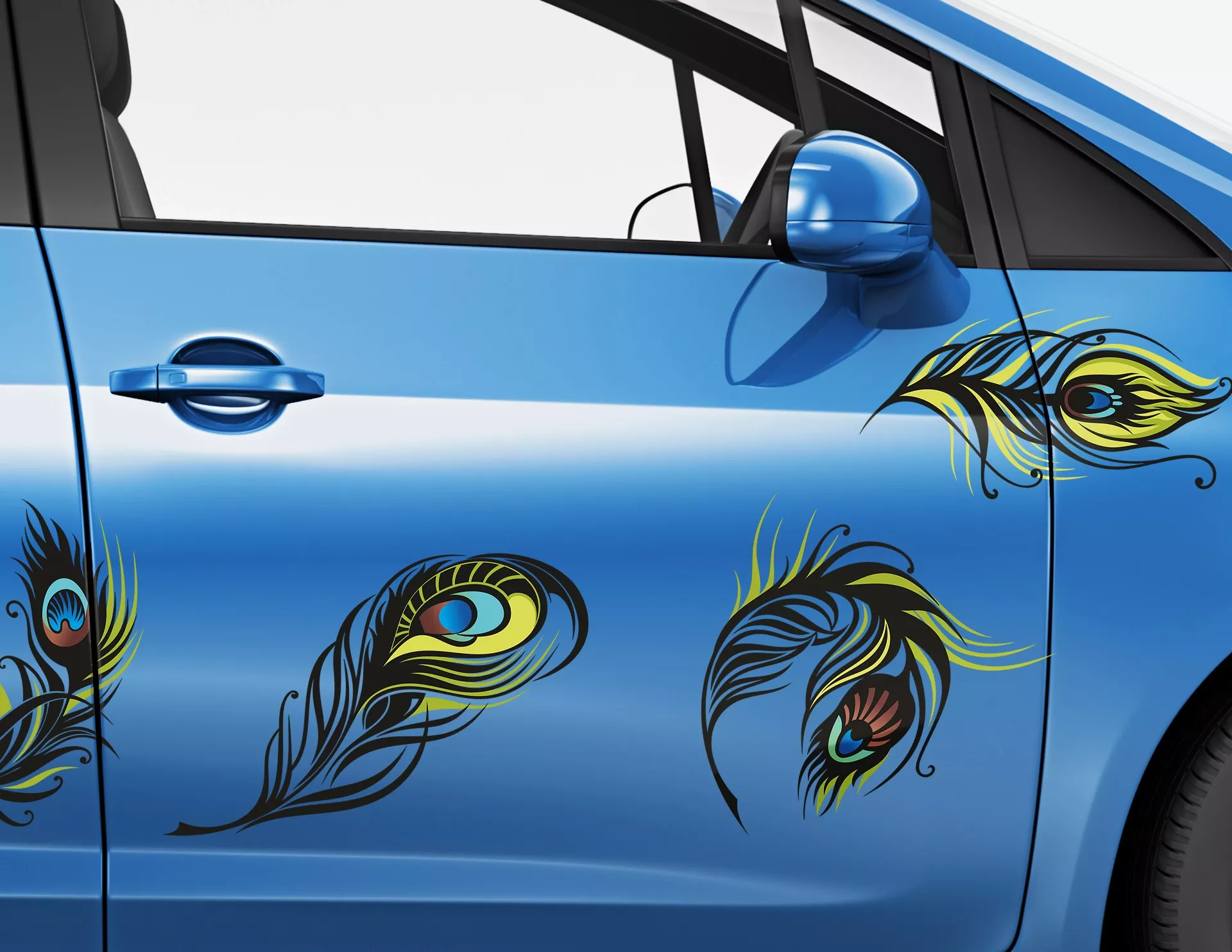 Infos & FAQ für Autoaufkleber Bunte Pfauenfedern
