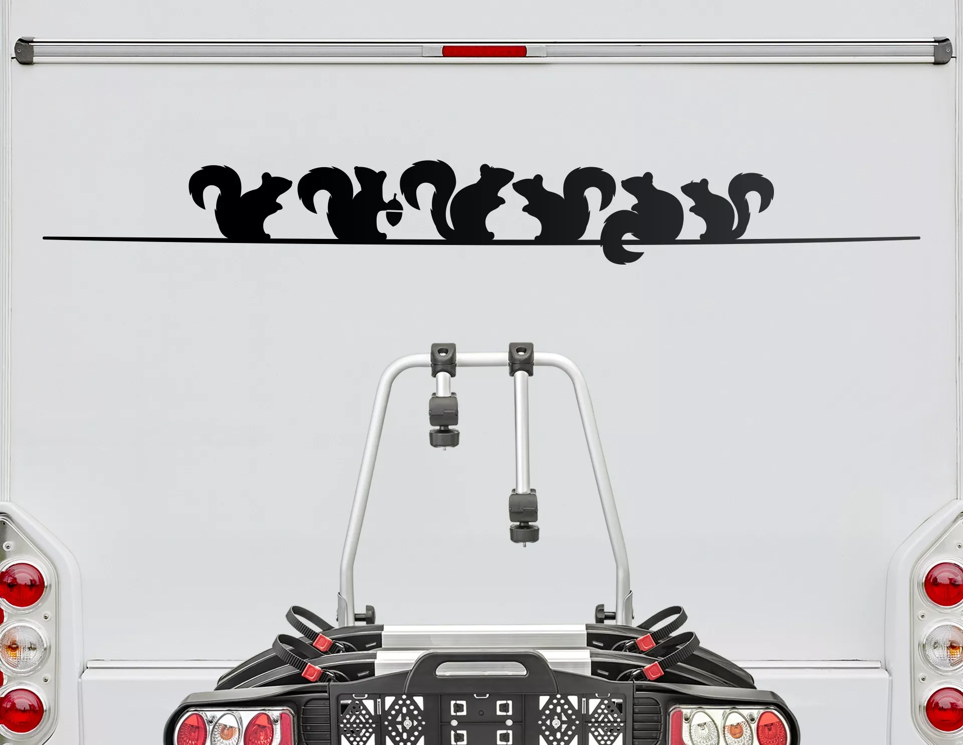 Unser Autoaufkleber Eichhörnchen Geflüster bringt den Zauber der Natur direkt auf Dein fahrendes Zuhause. Mit sechs entzückenden Eichhörnchen-Silhouetten auf einer Linie, ist dieses Design ideal für Caravans, Camper und längliche Flächen. Leicht zu applizieren und ein echter Hingucker, der Deinem mobilen Heim einen Hauch von Wald & Wildnis verleiht. Perfekt für alle Natur- und Tierliebhaber!
