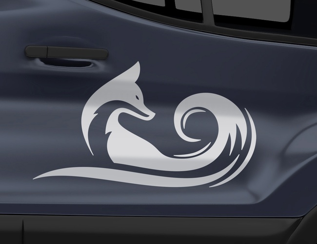 Elegant und wild: Wie ein Fuchs durch Wald und Feld streifen, fasziniert von wilder Natur und dem einfachen Leben – Autoaufkleber Fox Tail Wave mit fabelhaftem Wappentier für Camper, Caravan & Co.
