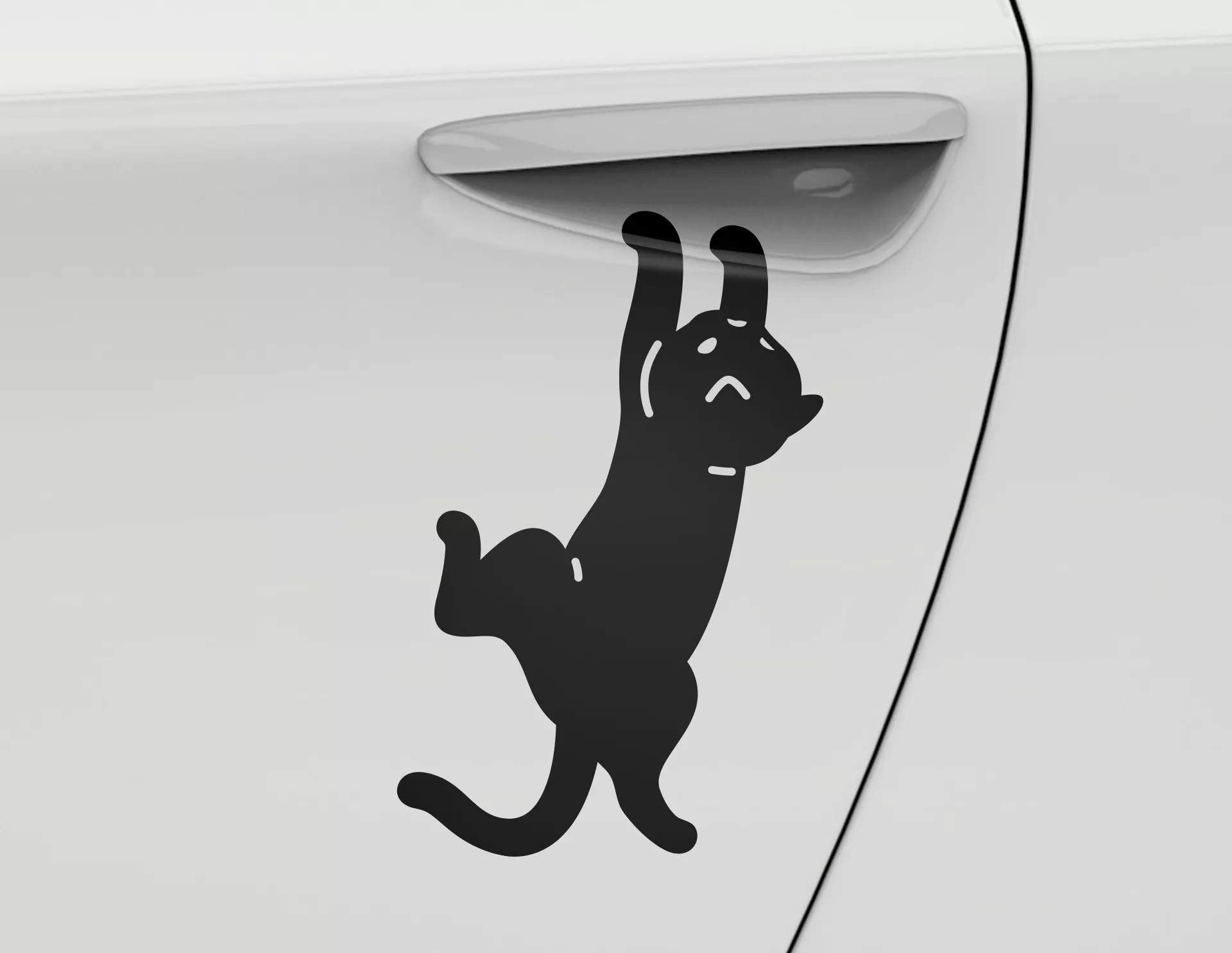 Moderne Autos wirken clean und kühl. Da kann etwas liebevolle Dekoration nicht schaden. Dieser Sticker verziert das Fahrzeug mit einer kleinen Katze, die scheinbar am Türgriff hängt. Aber keine Sorge, die Mieze wird den Lack schon nicht zerkratzen. Stattdessen bringt sie Abwechslung und Freude auf jedes Automobil tierlieber Haushalte.