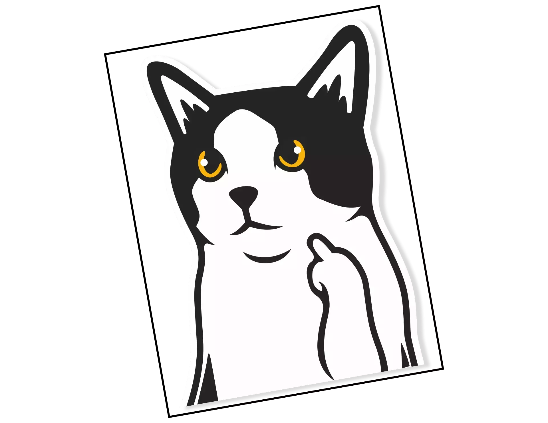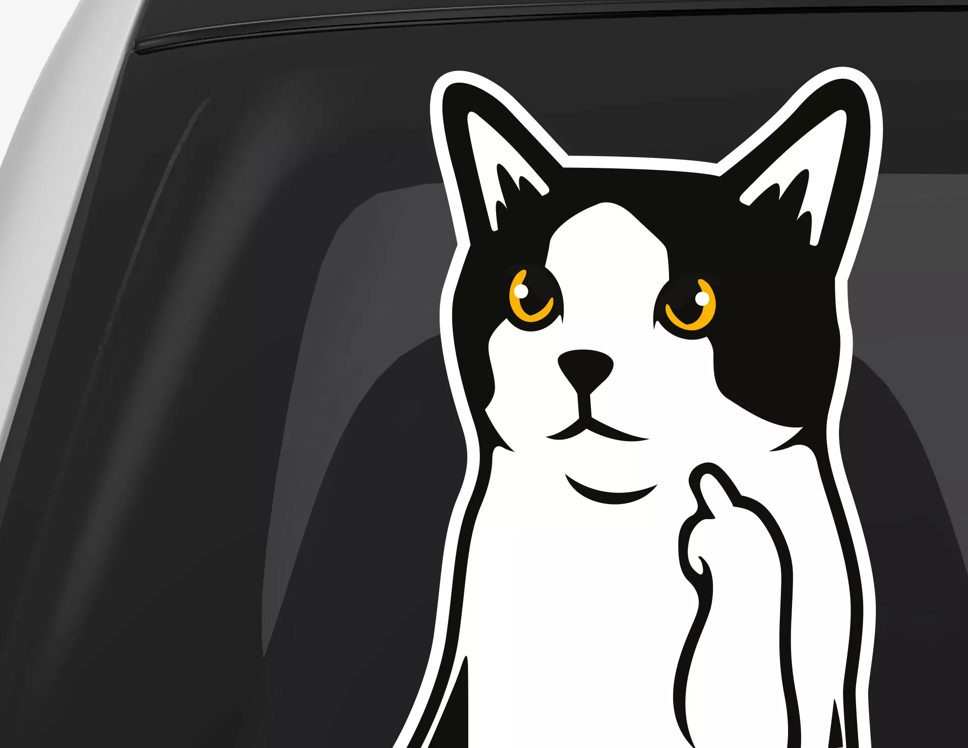 Wenn Du das genauso siehst oder schon immer mal so ein Tier-Design haben wolltest, dann hol' Dir diesen coolen Autoaufkleber "FU Cat" und verziere damit Deinen Wagen, passend in vielen Größen, z.B. für die Heck- oder die Seitenscheiben.
