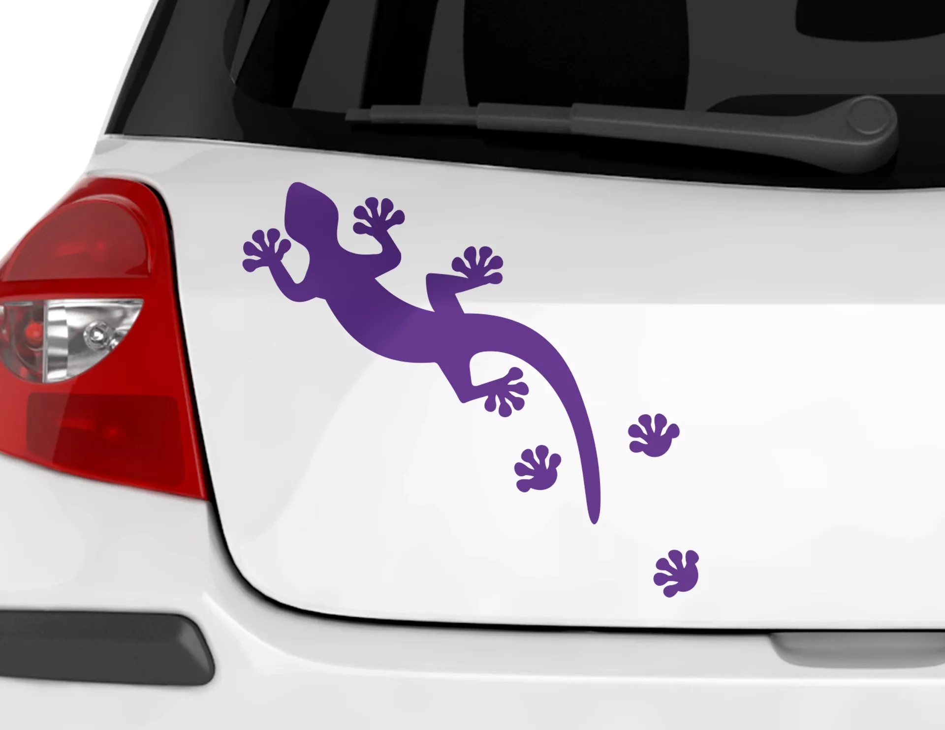 Unser Autoaufkleber Geckosteps liebt die glatten Oberflächen Deines Autos und hinterlässt ganz selbstbewusst seine Spur auf dem Lack.