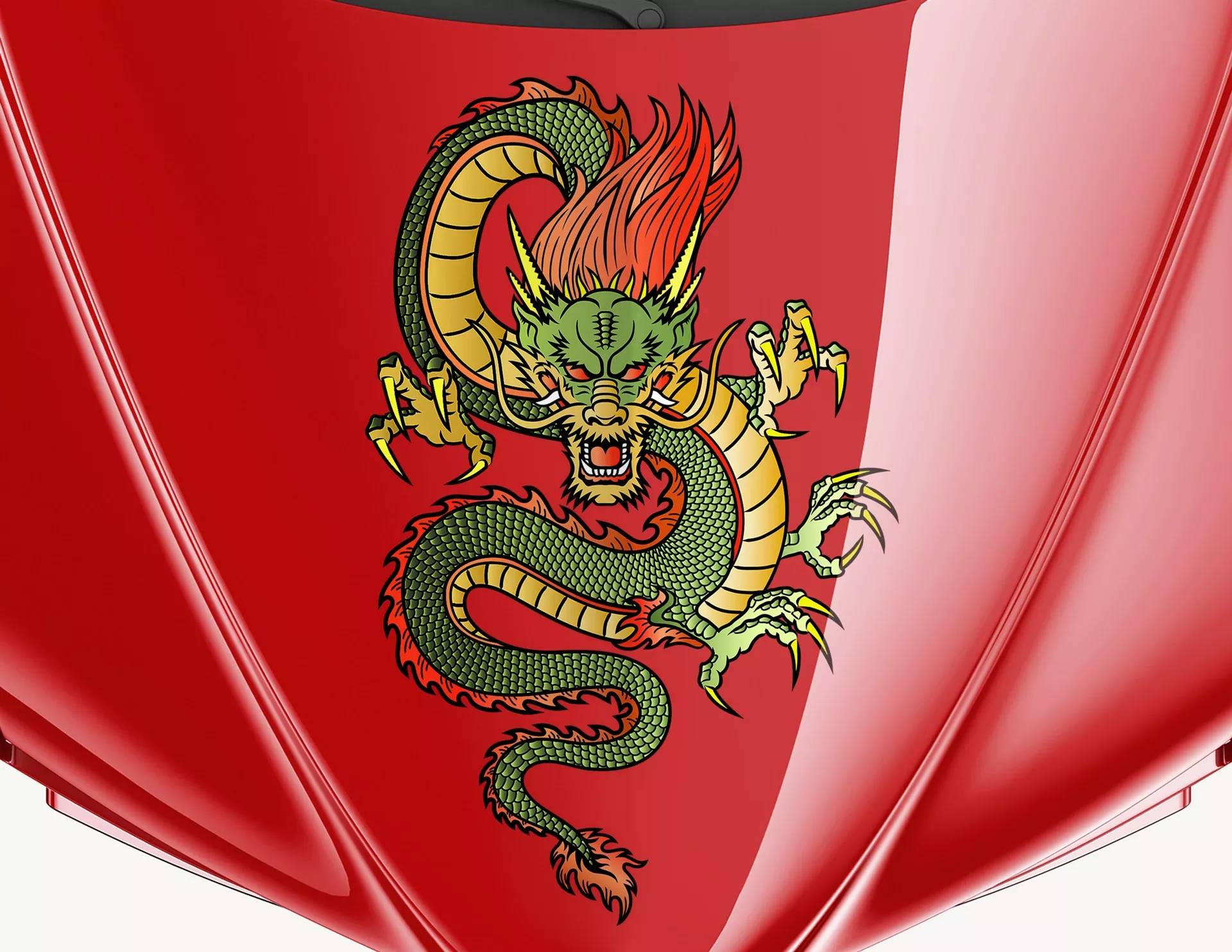 In der chinesischen Mythologie ist der Drache ein Symbol für Glück, Kraft & Macht. Autoaufkleber Glücksdrache Long: ein Motiv voller Mythen und Legenden, bestens geeignet als Krafttier und feurigen Kompagnon für Deinen Wagen.