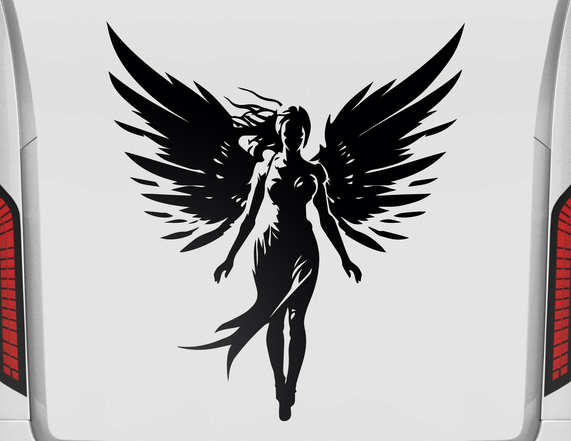 Himmlischer Wächter: Mit unserem Autoaufkleber Guardian Angel fügst Du Deinem Fahrzeug eine besondere Note hinzu. Das atemberaubende Design zeigt eine Frauenfigur mit prächtigen Engelsflügeln und wehendem Haar, die über Dich wacht.