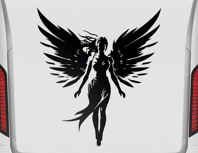 Himmlischer Wächter: Mit unserem Autoaufkleber Guardian Angel fügst Du Deinem Fahrzeug eine besondere Note hinzu. Das atemberaubende Schutzengel-Design zeigt eine Frauenfigur mit prächtigen Engelsflügeln und wehendem Haar, die über Dich wacht, während Du fährst. Ein Must-Have für alle, die nach einem symbolischen und emotionalen Element für ihr Fahrzeug suchen. Ein echter Hingucker, der Dein Auto in ein mobiles Kunstwerk verwandelt!