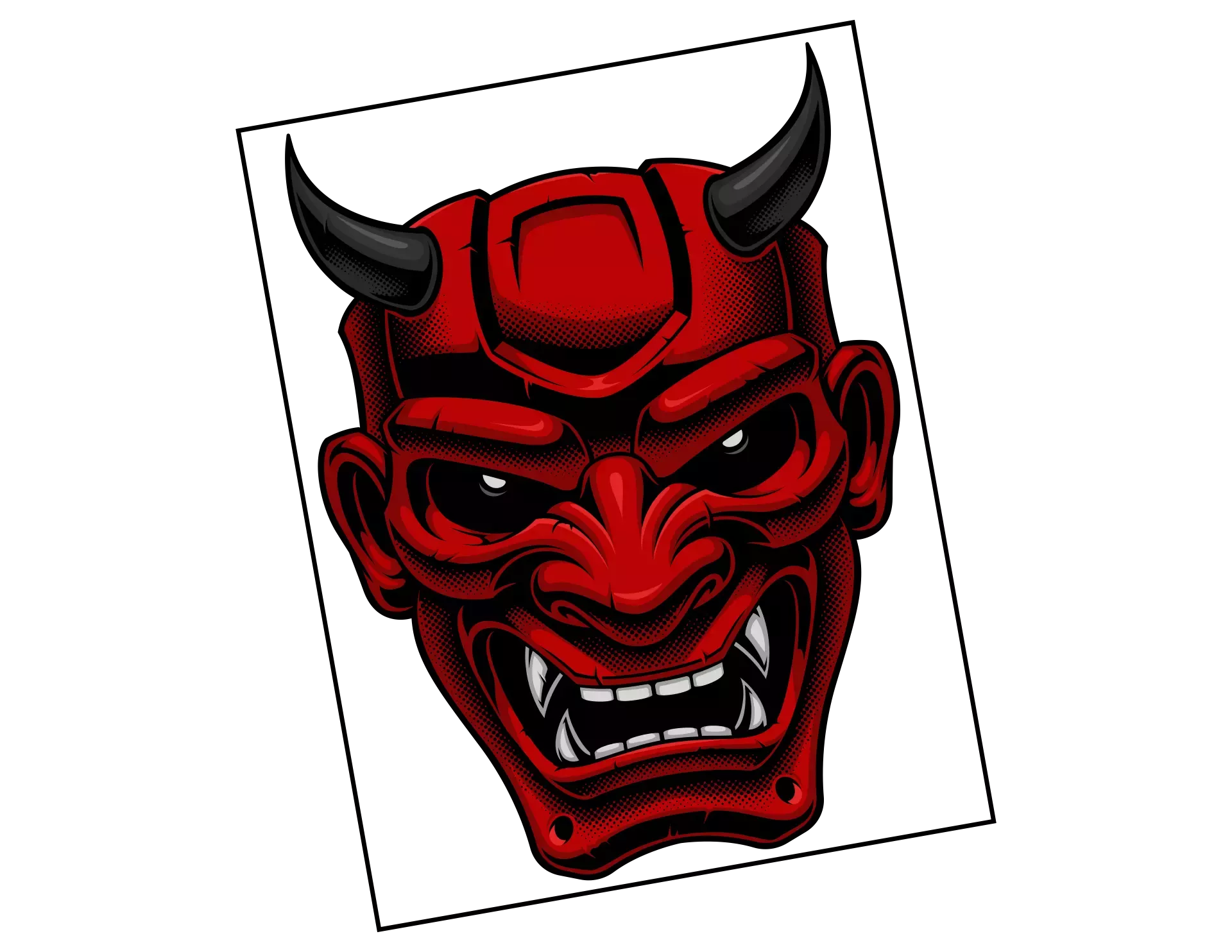 Ein Teufel mit Gefühlen! Gibt es nicht? Doch, in Japan. In der japanischen Mythologie steht eine tief dunkelrote Hannya Maske mit Hörnern und Reißzähnen für einen kraftvollen Dämonen. Sie verkörpert eine Frauengestalt, die von Eifersucht ergriffen ist, denn sie ist in einen Mönch verliebt, der ihre Gefühle nicht erwidert. Aus Verzweiflung verwandelt sie sich in eine boshafte Schlange und tötete ihn durch ihren Feueratem. Autoaufkleber "Hannya Maske": ein schauriges Design voller japanischer Mythen und Legenden für Deinen Wagen.