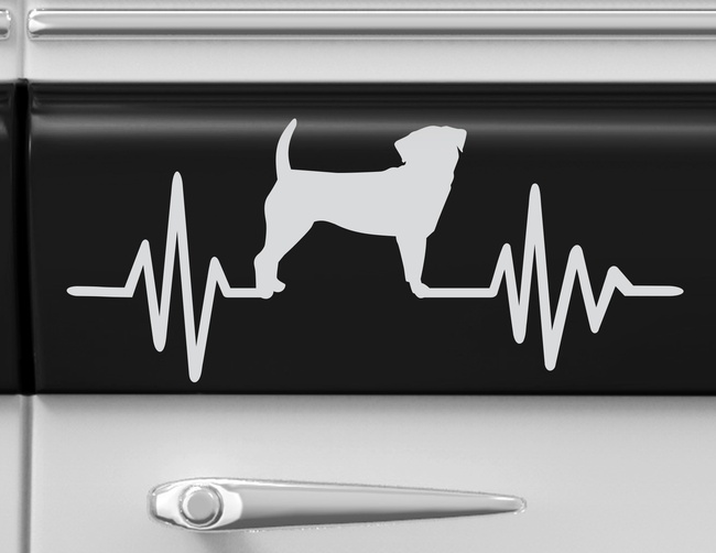 Damit auch jeder Straßenverkehrsteilnehmer sehen kann wie groß Deine Tierliebe ist, haben wir dieses niedliche Silhouetten-Design um eine auf- und abgehende EKG-Kurve ergänzt.