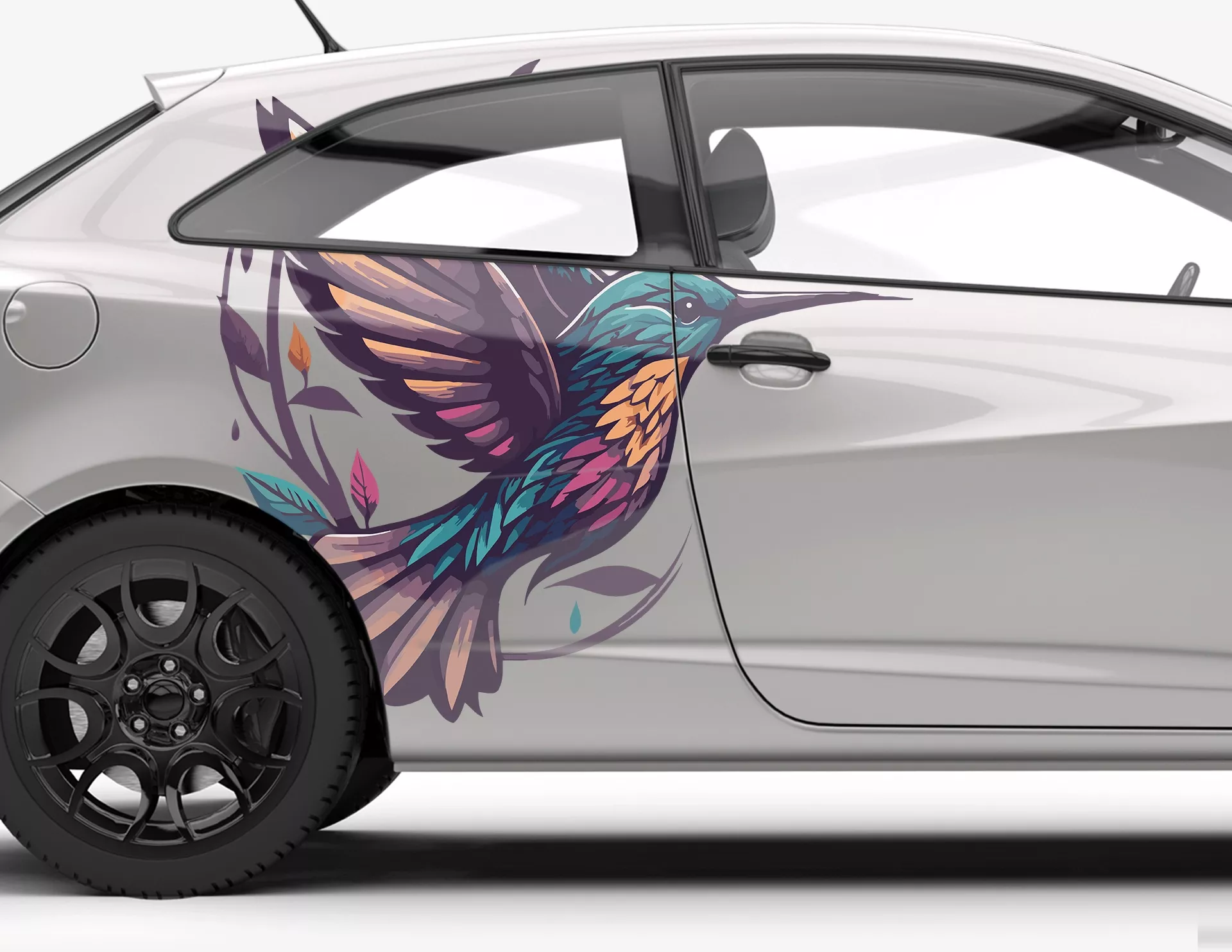 Infos & FAQ für Autoaufkleber Kolibri Blütenschwarm