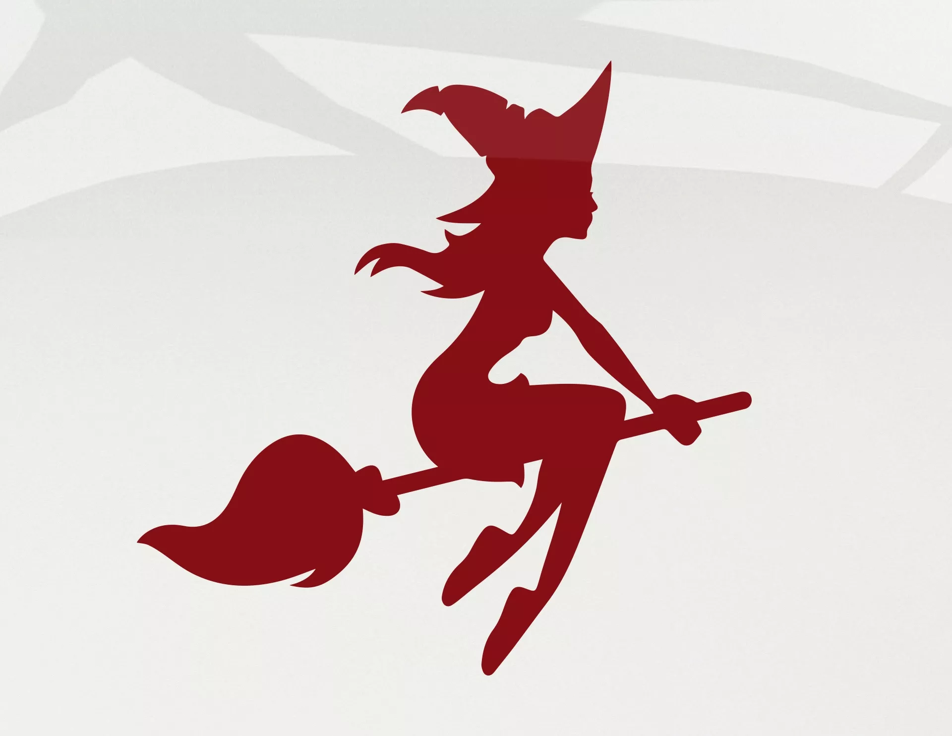 Hokuspokus – Fliegen, statt im Stau stehen? Diese Hexe macht es vor! Die Silhouette der flotten Hexe mit Zauberhut und Besen wirkt als Autoaufkleber geradezu magisch. Nicht nur an Halloween lässt sich das offizielle Hexenmobil damit unheimlich schick dekorieren.