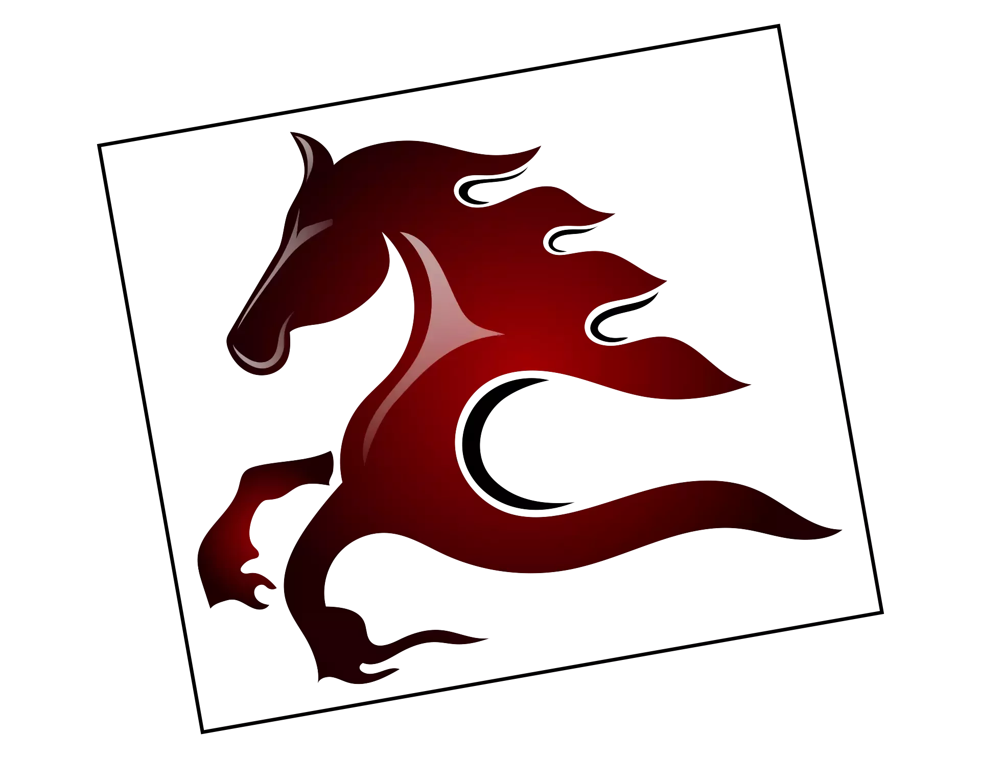 Ruhig Brauner! Autoaufkleber Pferd Amaretto im feurig-eleganten Logo-Stil mit einem majestätischen Vierbeiner, in den schönsten Rot- & Bordeaux-Tönen.