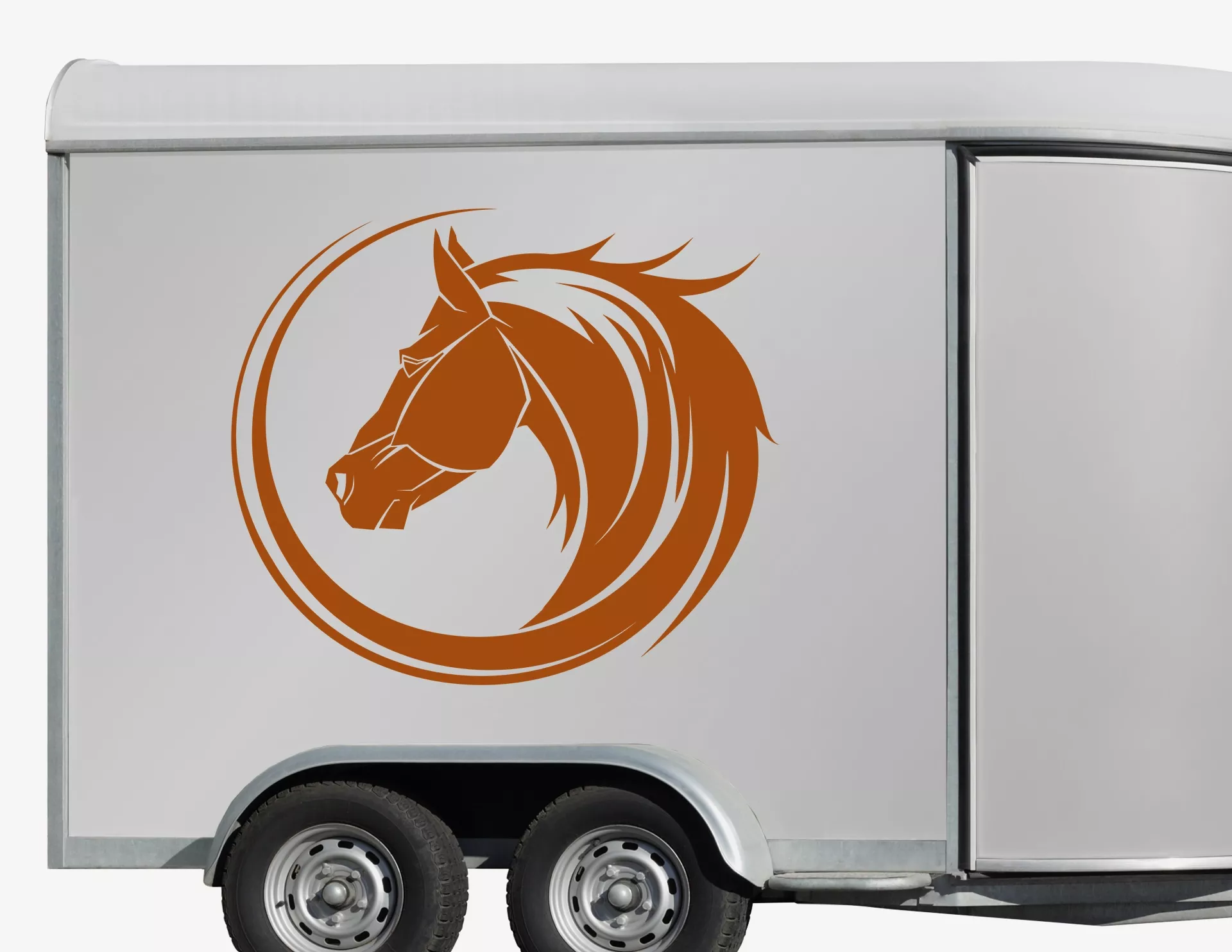 Autoaufkleber „Pferd Kaspar“ mit einem Pferdekopf im Profil und einer kreisrunden Kontur, die den Fokus ins Innere richtet. Für alle Pferdefreunde und ihren treuesten Gefährten.