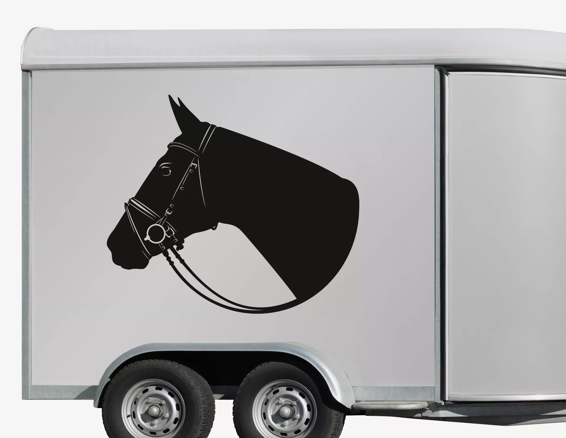 Augen gerade aus und Ohren gespitzt – jetzt kann es losgehen! Autoaufkleber "Pferd Orfeo": Dieser elegante Pferdekopf im Profil, mit detailreich gestaltetem Zaumzeug samt Trense und Zügeln, ist ein echter Hingucker und zeigt die Schönheit dieser Tiere in klassischem Design.