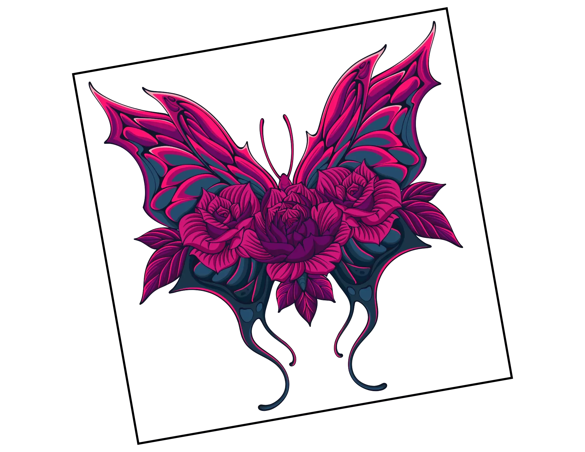 Dieser einzigartige Aufkleber präsentiert sich in einer bezaubernden Schmetterlingsform, die in lebendigen Pink-, Violett- und Blautönen erstrahlt. Drei wunderschöne, integrierte Rosen sorgen für einen romantischen Touch und verleihen Deinem Auto einen elegant-verspielten Look.