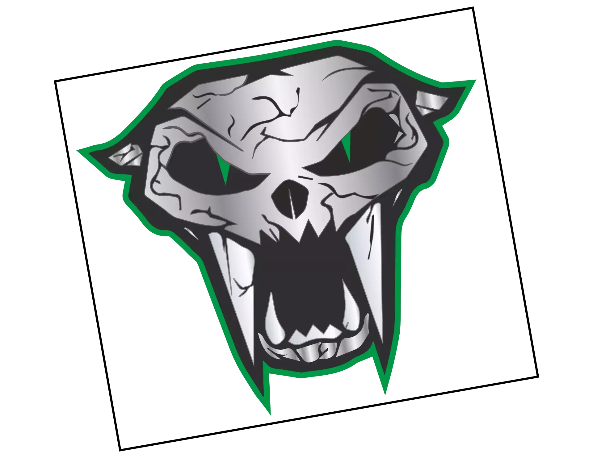 Und? Bist Du stark genug, ihm in die giftgrünen dunklen Augen zu blicken? – Autoaufkleber "Säbelzahntiger": ein unheimliches Motiv mit einem furchteinflößenden Untier, für eine höllisch gute Aura auf dem Lack – nicht nur Horror-Fans empfohlen.