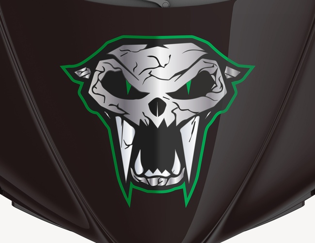 Vorsicht, mitfahren auf eigene Gefahr! Unser dämonischer Säbelzahntiger, vom gleichnamigen Design, bringt Herzen zum Klopfen und erzeugt jede Menge Gänsehaut. Der schaurige Schädel und die spitzen Reißzähne, welche sich im weit geöffneten schwarzen Maul zeigen, lassen einem das Blut in den Adern gefrieren.