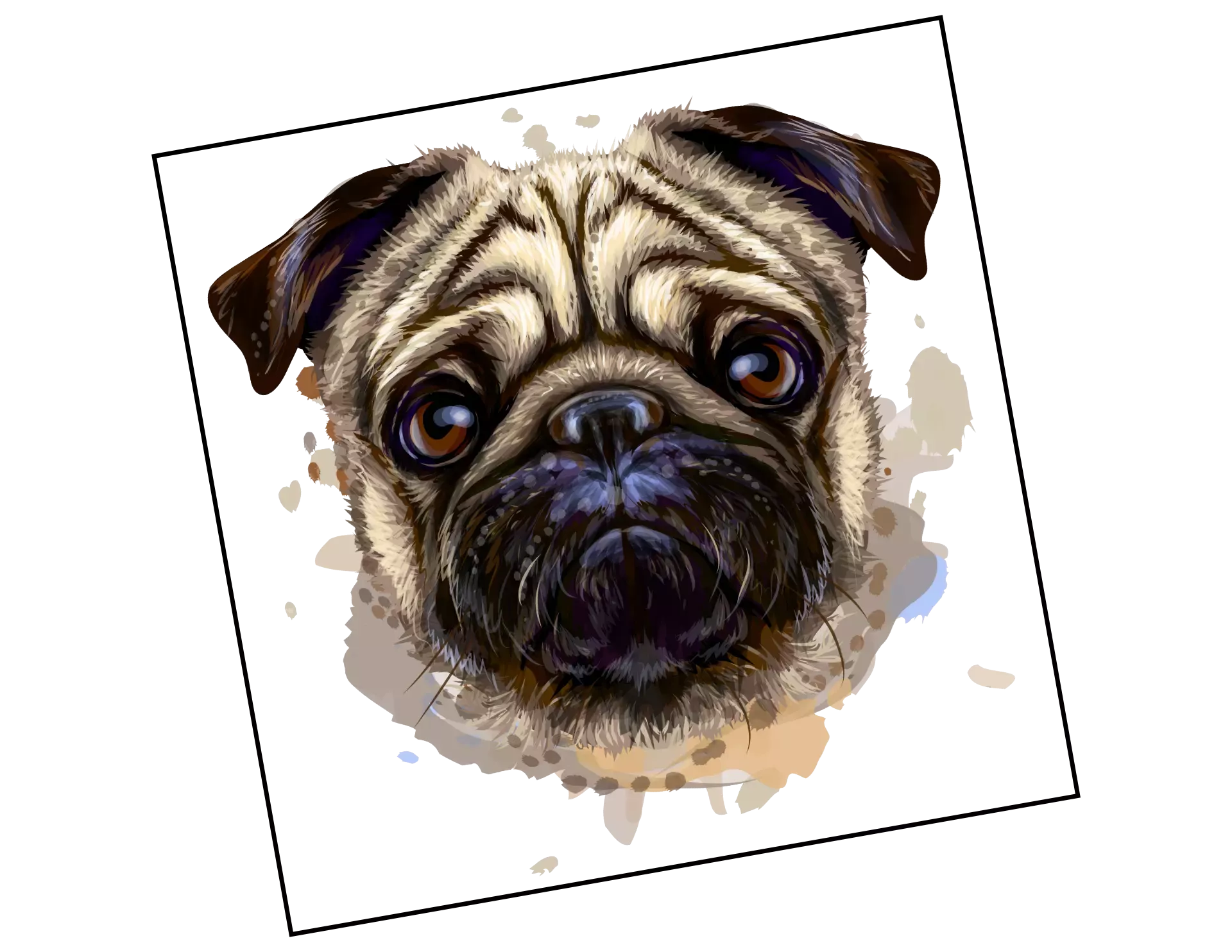 Charmant & würdevoll! Dem Mops wird ein fröhlicher und lebhafter Charakter nachgesagt und er gilt als unkompliziert und intelligent. Markant sind sein großer Kopf, die kleine Stupsnase, die kurzen Beine, die Knopfaugen, der Ringelschwanz und das glatte Fell. Der quirlige Hund stammt ursprünglich aus China und wird dort in langer Tradition gezüchtet. Aber auch in Europa wurde der Mops seit jeher geschätzt und hat sich in viele Herzen geschlichen. Bellen, apportieren, rennen, schwimmen, an der Leine ziehen und auf dem Sofa dösen – Autoaufkleber "Samson der Mops Hund": ein fein aquarellierter Motiv-Aufkleber, mit einem mopsfidelen Partner, für Deinen Wagen.