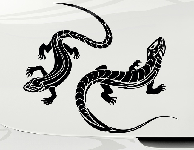 Machen Lust auf Sommer: Echsen lieben es warm und sind wahre Sonnenanbeter. Mit unserem Autoaufkleber "Tribal Lizards" samt schöner Ornamentik bekommst Du viele Möglichkeiten Deinen Wagen neu in Szene zu setzten ...