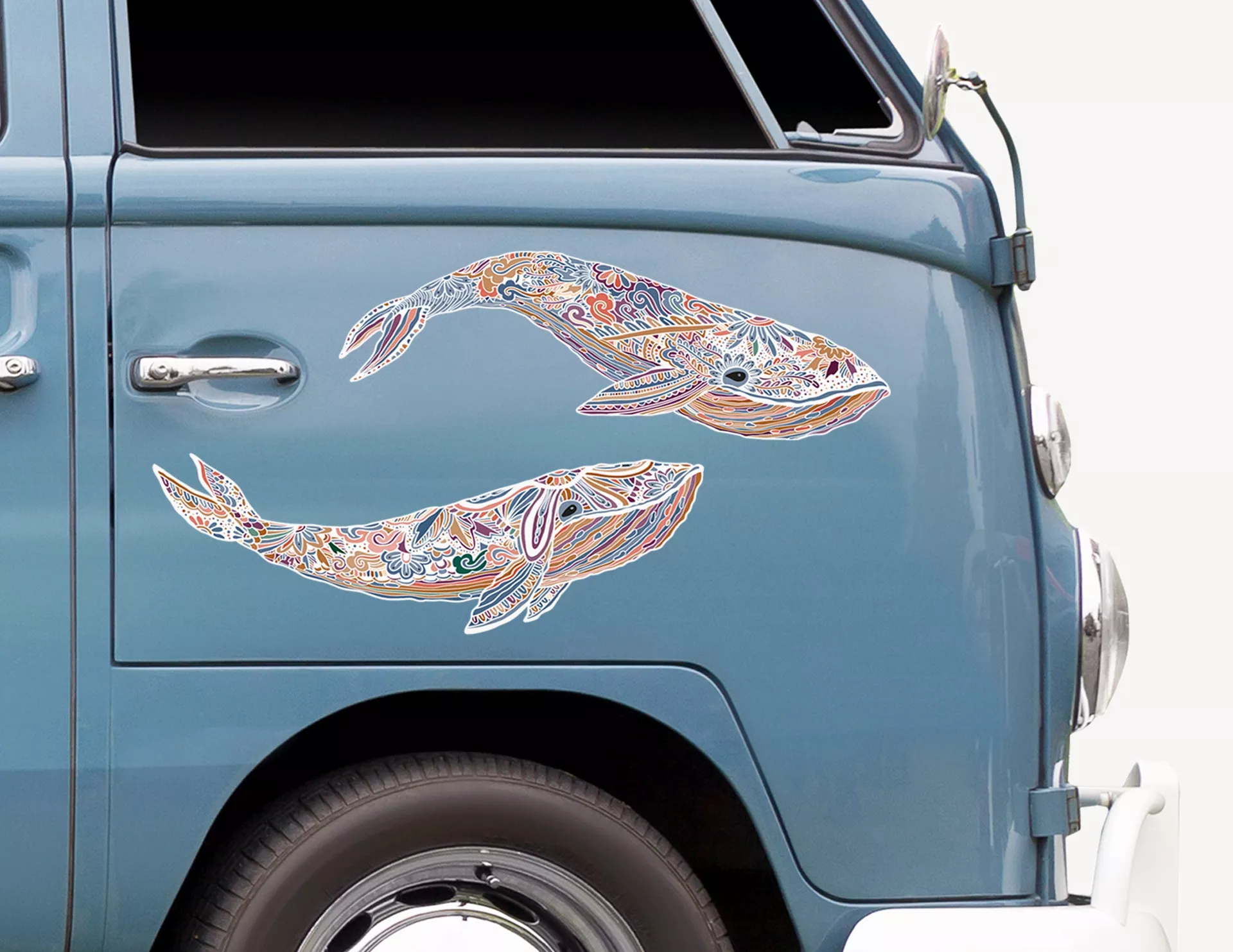Warum nicht einmal Wale in freier Wildbahn beobachten? Denn gibt es etwas Schöneres, als einen Road-Trip ans Meer? Also einfach losrollen, raus in die Natur! Ein Gefühl von großer Freiheit verbreiten auch die beiden farbenfrohen Wale von unserem Design. Die sanften Riesen sind nicht nur in den Weiten der Ozeane Zuhause, sondern tummeln sich auch munter auf jedem Wagen. Autoaufkleber "Wal Magie Zentangle-Style", ein Motiv mit maritimer Note und allen Tierfreunden wärmstens empfohlen.