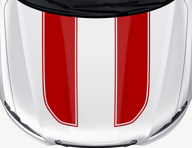 100% "Bolid Proof": Cooler Autoaufkleber mit zwei breiten Streifen und umlaufend schmalen Kontur für die Motorhaube. Für echte Boliden, oder solche, die es werden wollen.