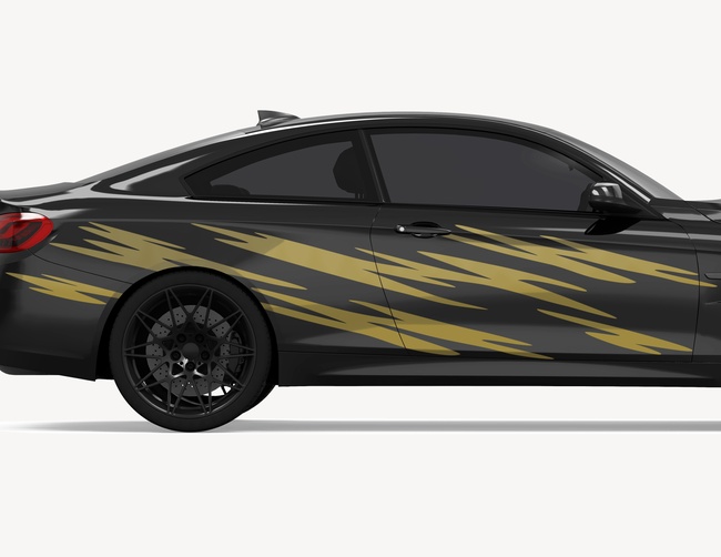 Im Idealfall vermeidest Du die Verklebung über Kanten, Sicken oder Gummis. Fertige Dir eine vermasste Skizze von Deinem Fahrzeug an und nutze die großen, glatten Flächen für die Beschriftung.