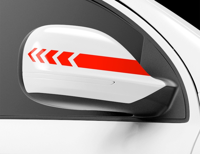 Auf die Details kommt es an: Autoaufkleber Dashed Fusion als Zierstreifen für die Rückspiegel im Pfeil-Design.