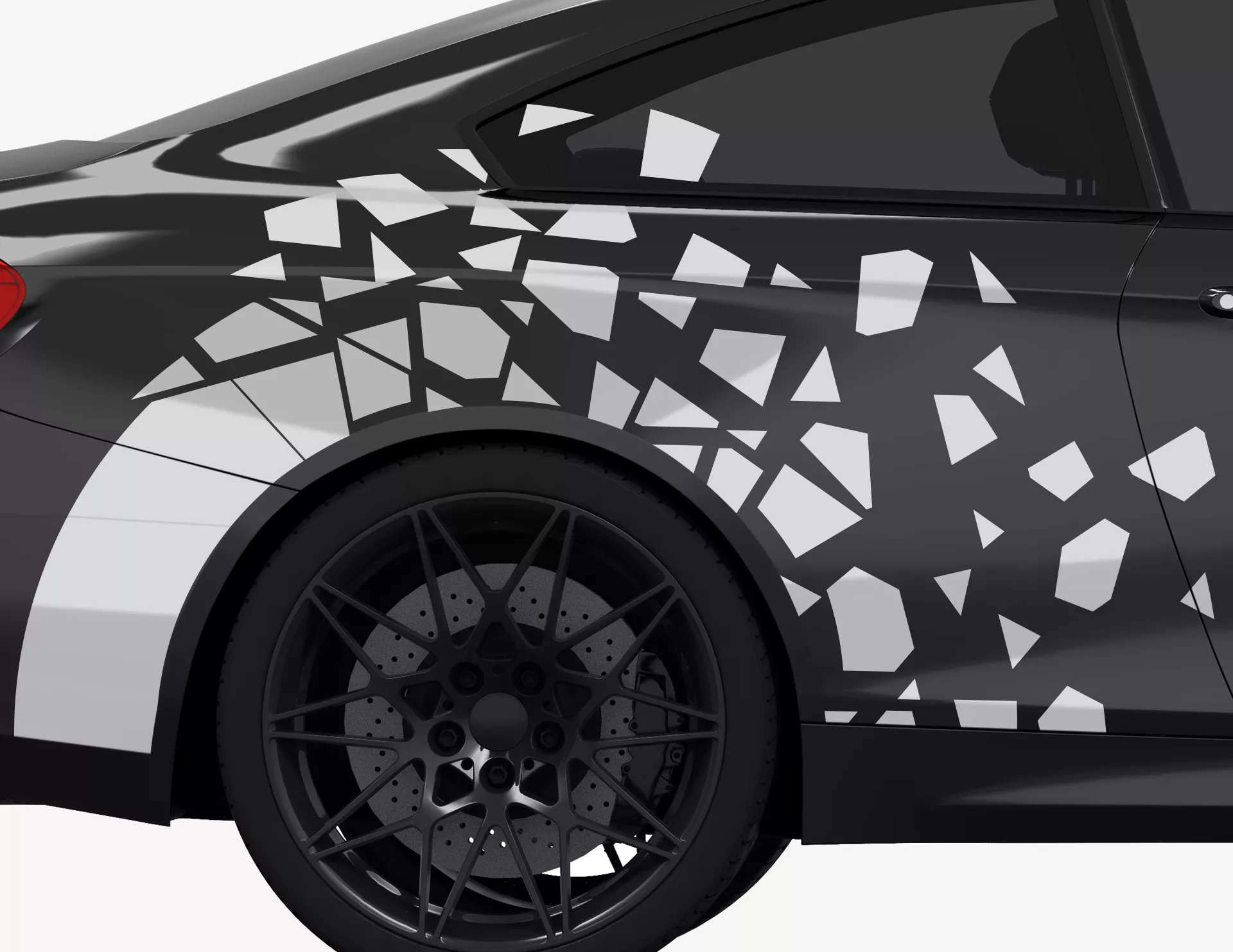 Fast wirkt es so, als wären diese unzähligen, asymmetrischen Kristalle gerade von einer digitalen Gletscher-Scholle abgesplittert und wirbeln nun frei im Orbit herum. Autoaufkleber Drift on Ice mit einzigartigem Muster 'Cool as Ice'.