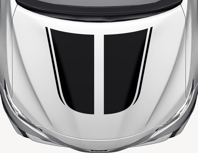 "Fast schon heilig" – ein cooles Design für die Motorhaube! Zwei breite Rallyestreifen mit fein abgesetzten Außenlinien verschmelzen zu einer dynamischen Form, die Deinem Fahrzeug eine rasante Optik verleiht und klaren Vorwärtsdrang zeigt. Passend für jede Motoabdeckung: mittig oder oben bündig abschließend aufs Haubenblech geklebt. Da bleibt das Auge hängen – Autoaufkleber "Holy Hood"