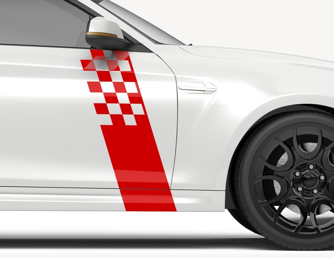 Ohne viel Aufwand zum sportlichen Look – Autoaufkleber Karo Rules: Abgeschrägtes Seitenstreifen-Design für optisches Tuning im Rallye-Stil.