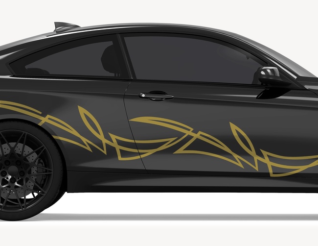 Die geometrischen, ineinander laufenden Formen betonen z.B. die Kotflügel und schaffen so einen Rahmen für hochwertige Tuningfelgen. Ein amtlicher Design-Aufkleber, der jedem Fahrzeug neuen Reiz verleiht: Unser Autoaufkleber Pinstripe Sama.