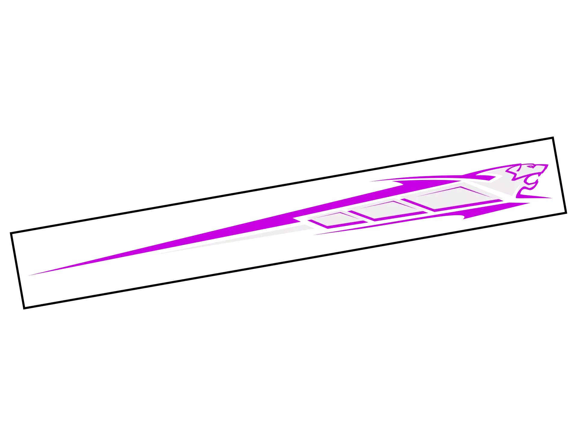 Von null auf Tempo 100! Bekannt ist, dass Rennstreifen ein Auto noch schneller wirken lassen. So haben wir, von klassischen 'Le Mans-Streifen' inspiriert, ein cooles Design entworfen, bestehend aus mehreren grafischen, spitz zulaufenden Elementen und einem stilisierten Panther-Kopf. Autoaufkleber "Purple Panther Decal": ein Motiv in Violett und Silbergrau – verbindet echte Coolness mit Schnelligkeit & Eleganz.