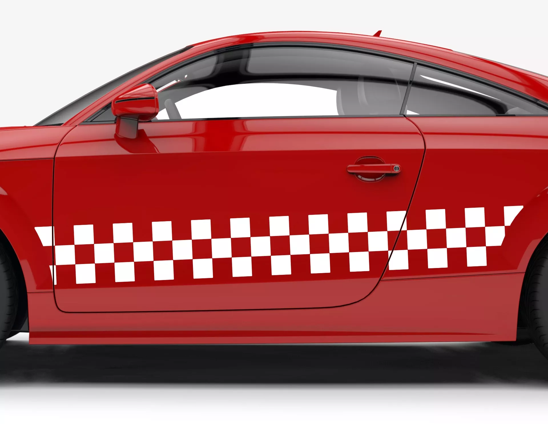 Unser Design-Klassiker für alle Motosportfans: Autoaufkleber Racing-Squares, eine großartige Fahrzeugbeschriftung im Stil großer Rennwagen.