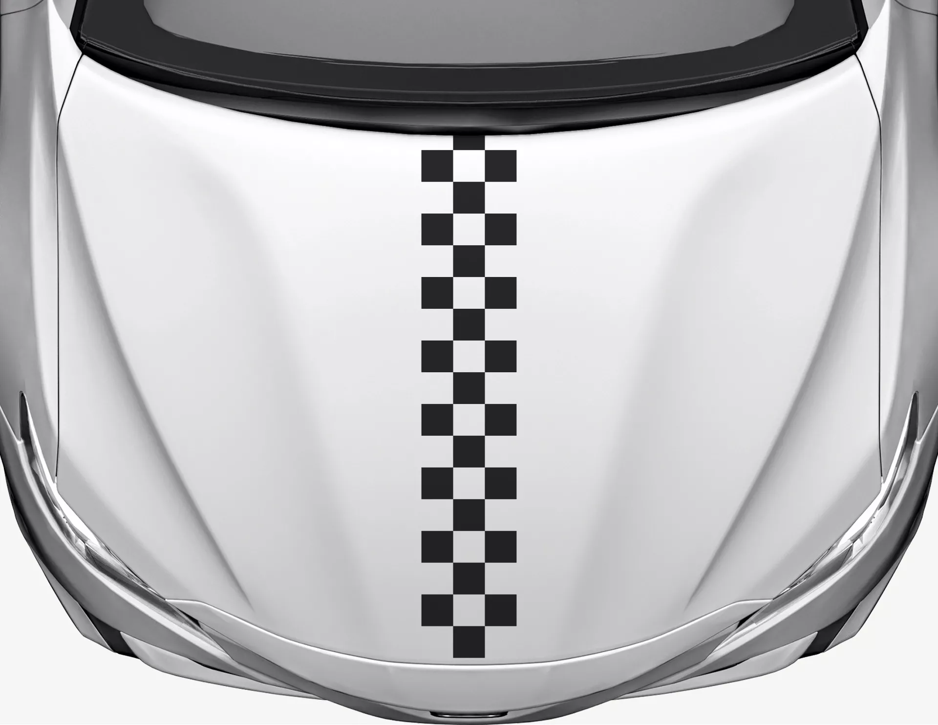 Dieser sportliche Sticker für die Motorhaube zeigt die bekannte Checker Flag, die auf der Rennstrecke den Zieleinlauf signalisiert. Das schmale Design mit drei Karo-Reihen wirkt cool, markant und individuell.