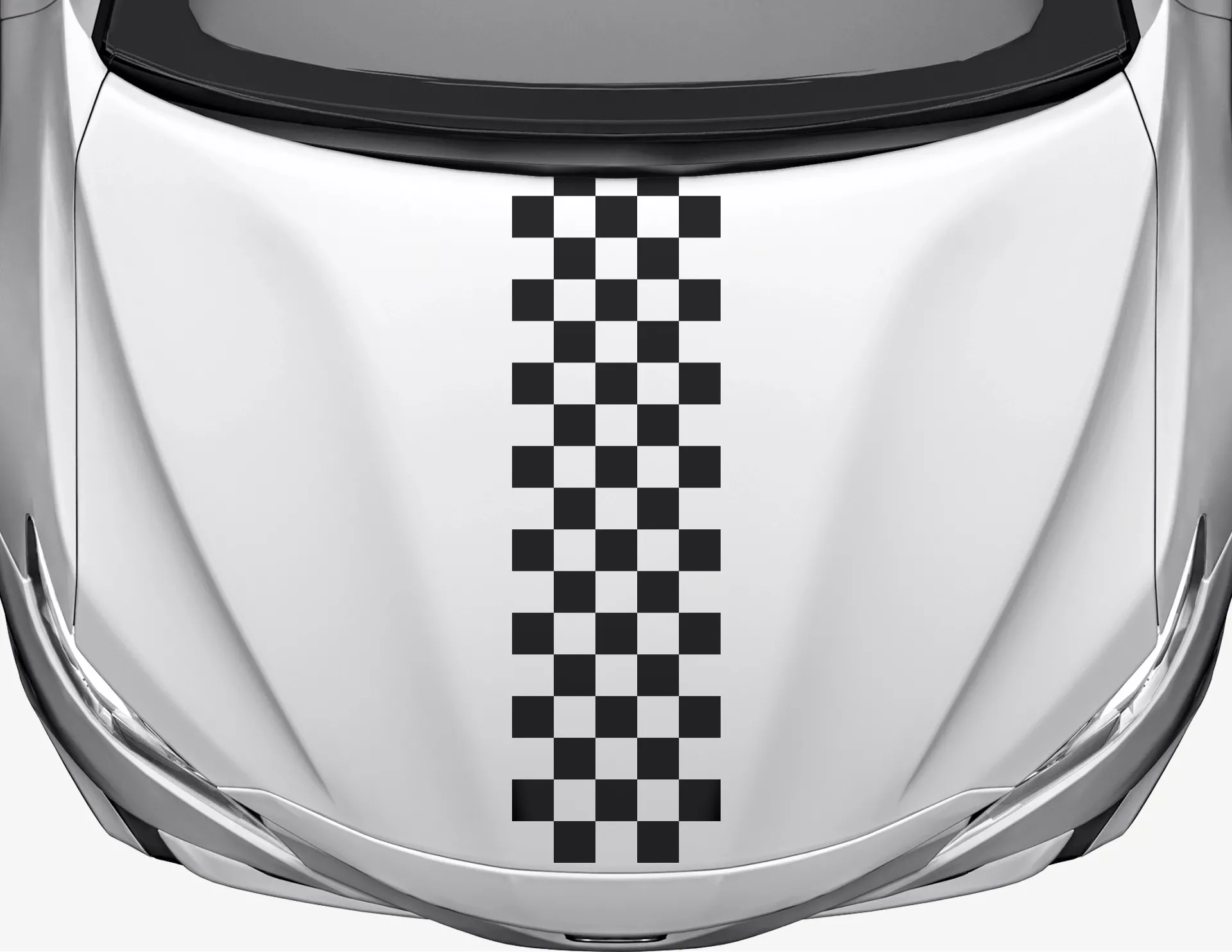 Dieser Motorhaubenaufkleber zeigt die aus dem Rennsport bekannte Checker Flag, die den Zieleinlauf signalisiert. Autoaufkleber Rallyestreifen Karo #5 – fünf Karo-Reihen für einen coolen Racing Look.
