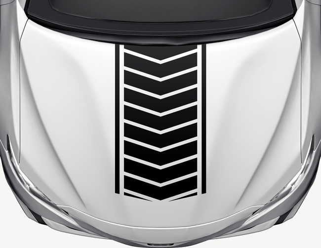 Geometrisches Design voller Dynamik: Der Rallyestreifen in Pfeil-Optik "Sober Swift" für die Motorhaube bringt pures Racing-Feeling auf die Straße