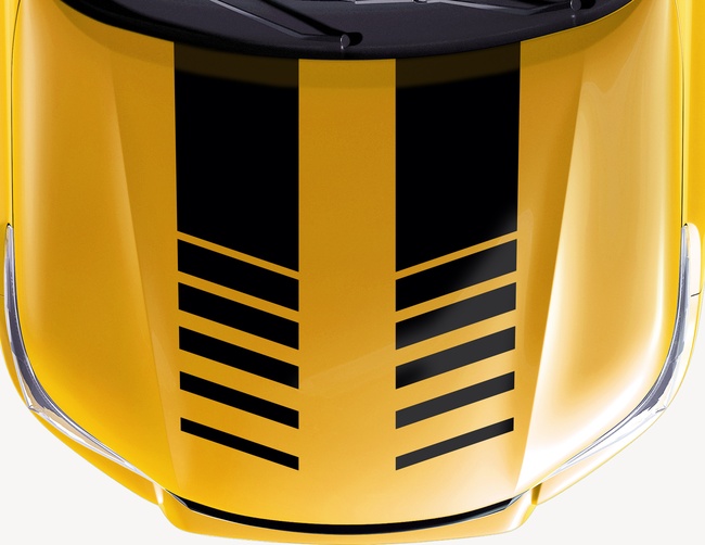 Autoaufkleber "Speed Patrol" für die Motorhaube. Zwei Streifen mit schräg durchbrochenen Linien und optischem Verlauf.