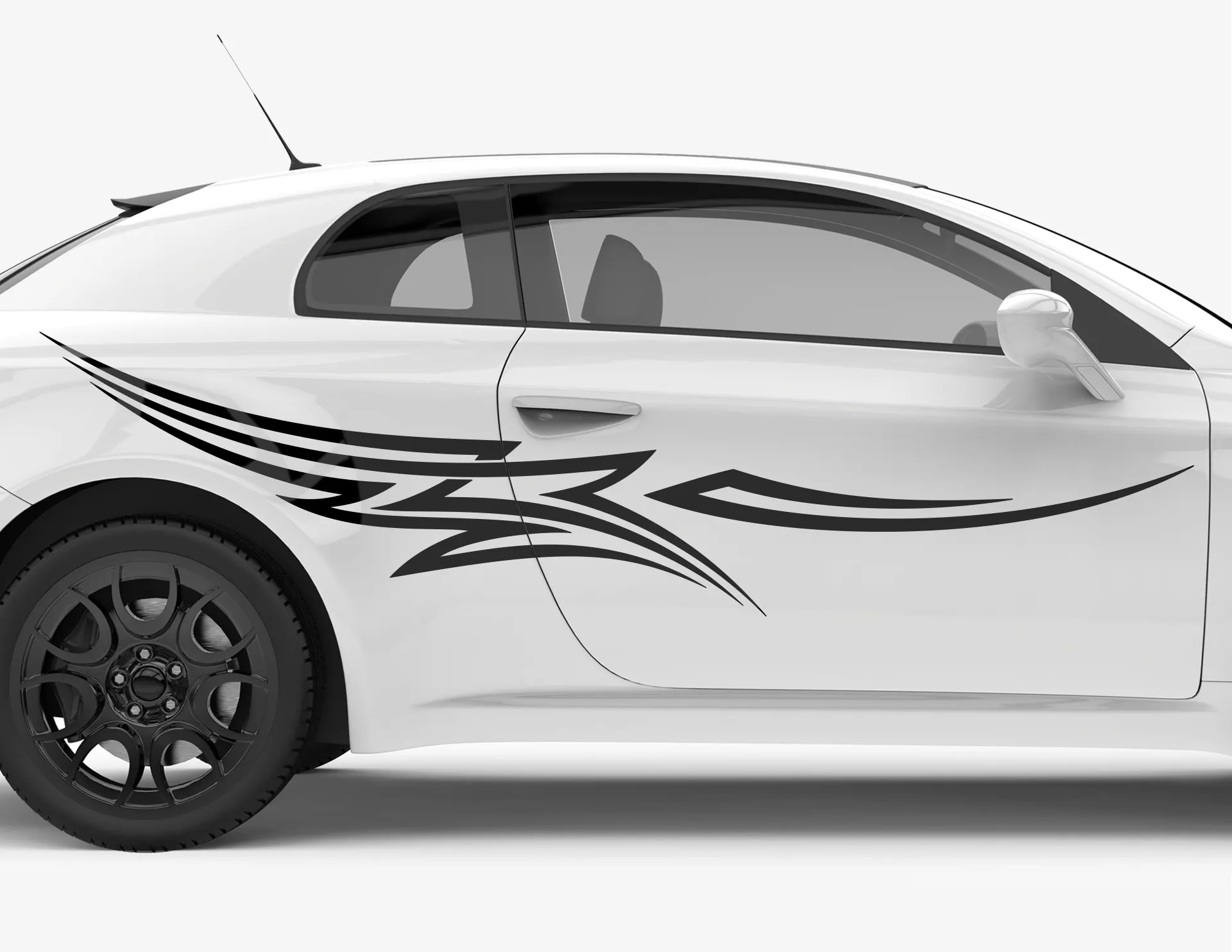 Breite Deine Flügel aus… und werde mit diesem Autoaufkleber zum Firebird der Rennbahn! Erstaunlich, aber irgendwie erinnern diese beiden abstrakten Elemente an weit ausgebreitete Flügel – so geht Cartuning. Ein schönes 2-teiliges Sticker-Set als lang gestreckte Autostreifen im Tribal-Look: Unser Autoaufkleber Spread your Wings.