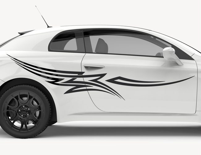 Im Idealfall vermeidest Du die Verklebung über Kanten, Sicken oder Gummis. Fertige Dir eine vermasste Skizze von Deinem Fahrzeug an und nutze die großen, glatten Flächen für die Beschriftung.