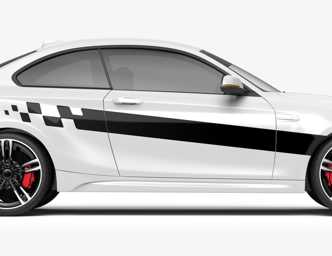 Rally Time! Mit diesen Rallyestreifen in Checker-Flag-Optik, kannst Du Deinem Wagen eine sportliche Note verpassen und bekommst zudem fühlbar mehr Fahrspaß. Ein cooler Seitenaufkleber aus vielen großen und kleinen Quadraten, der Deinen Wagen optisch schneller wirken lässt – Autoaufkleber Square Grid Stripe.