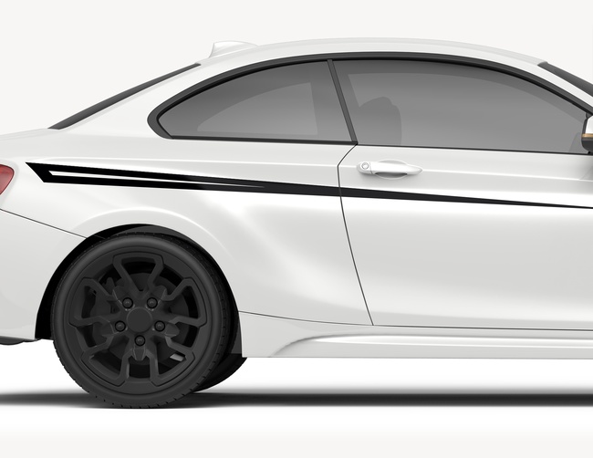 Einfach mal auf die Spitze treiben: Dieser Autostreifen ist ein weit gestrecktes Dreieck mit langer Spitze, abgeschrägter Kante und durchbrochenem Kern. Zum unterstreichen der Fahrzeugkontur und Highlights setzten so einfach wie genial – Autoaufkleber Triarama.