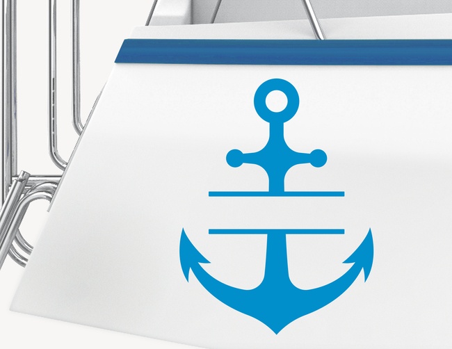 Zu jedem Boot gehört ein Anker! Der maritime Bootsaufkleber "Anker Split" ist ein echter Hingucker und macht auch als Rahmen für Deinen Bootsnamen eine gute Figur.