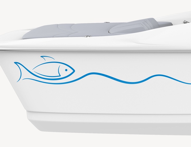 Guter Fang: Bootsaufkleber Blaufisch mit Welle als elegant-grafischer Zierstreifen mit maritimer Anmutung, für einen ganz individuellen Look in Deiner Wunsch-Farbe und Größe.