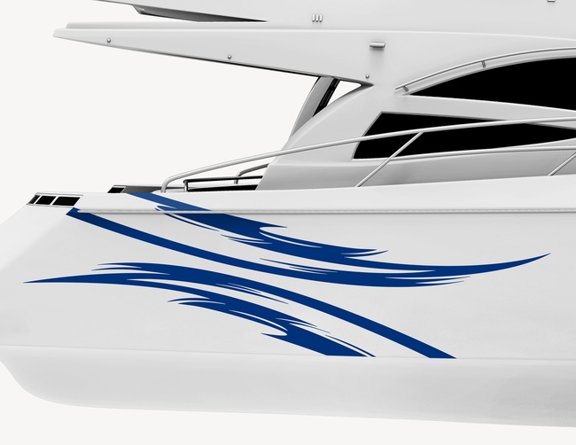 Wie von Meisterhand: So sehen die abstrakten Pinselstriche des Bootsaufklebers Brush Strokes aus. Die künstlerisch geschwungenen Bögen lassen sich am Boot variabel montieren; für einen Look, den man auch „Wild at Heart“ trifft auf „Modern Art“ nennen könnte.