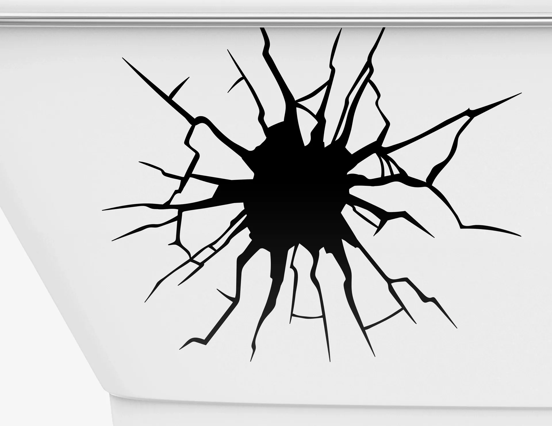 Der Durchbruch: Unser Bootsaufkleber Cool Cracker imitiert den Effekt von durchschlagenem Glas, komplett mit Splittern und Rissen.