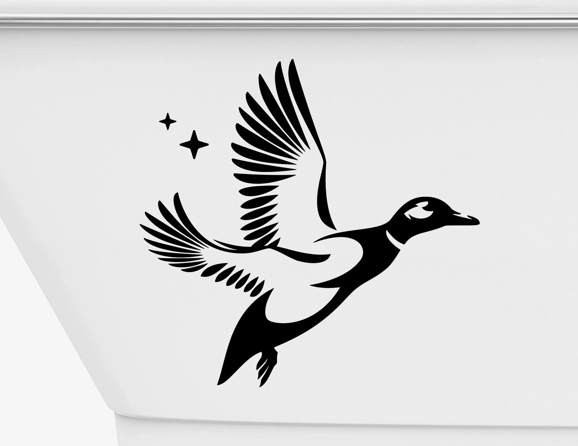 Ente gut, alles gut: Bootsaufkleber Flying Duck mit Stockente und vier Sternen, für einen ganz individuellen Look in Deiner Wunsch-Farbe und Größe.