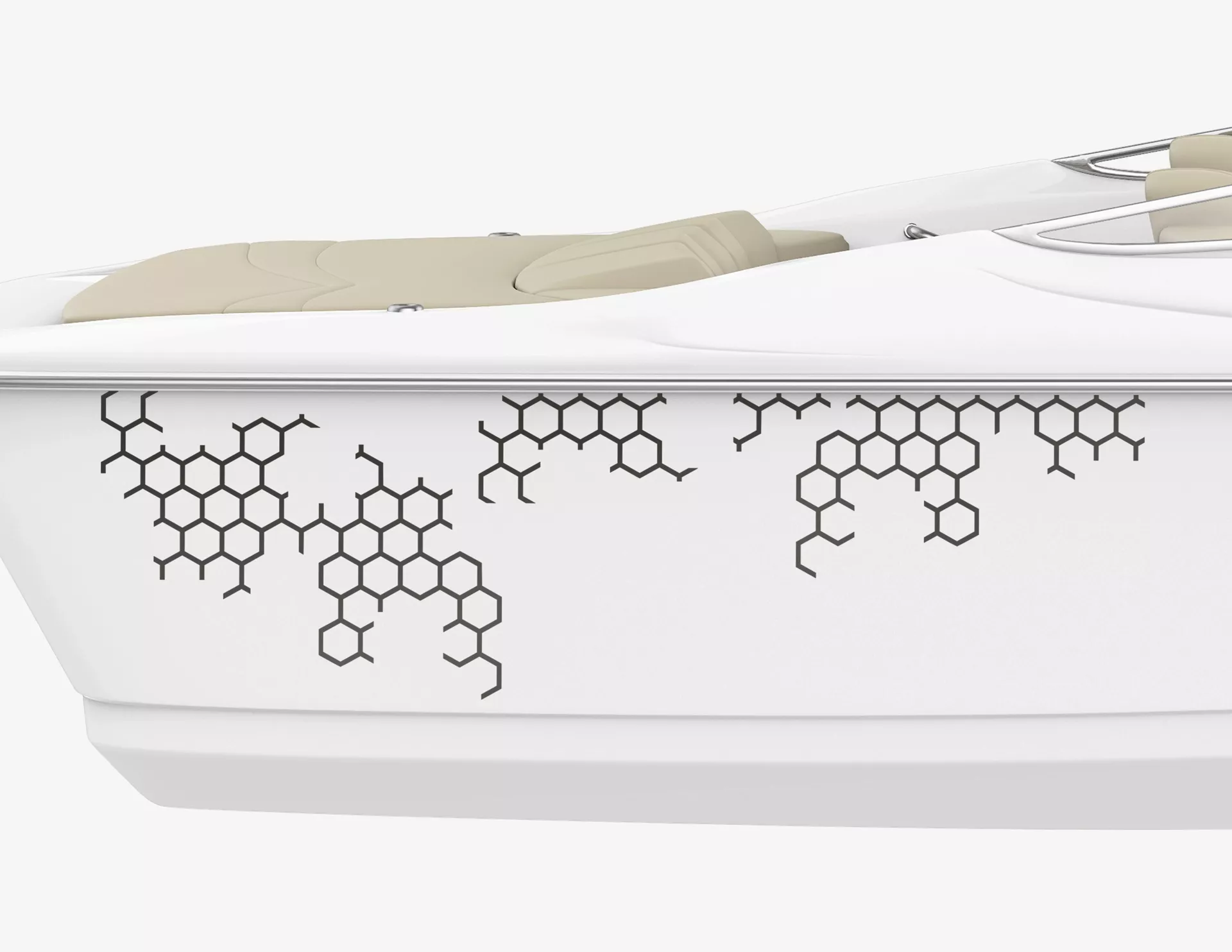 Cooler Stilmix: Der Bootsaufkleber Hacky Hexagon mit den dekonstruierten Sechsecken sieht spektakulär aus und spendiert Deinem Boot einen super modernen Look.