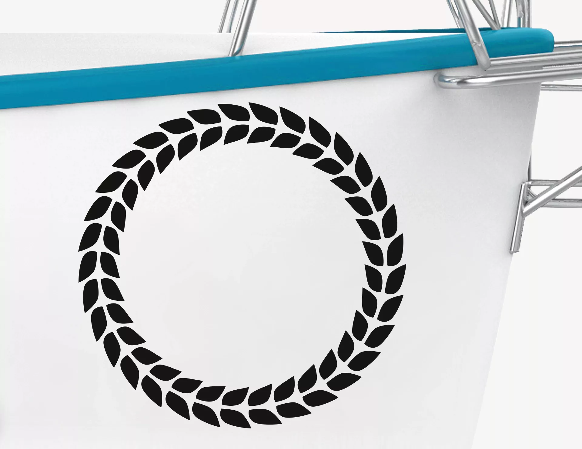 Ehre, wem Ehre gebührt: Unser Bootsaufkleber "Lorbeerkranz" im klassisch, rundem Blatt-Design für viel gestalterischen Freiraum von Rumpf bis Kajüte.