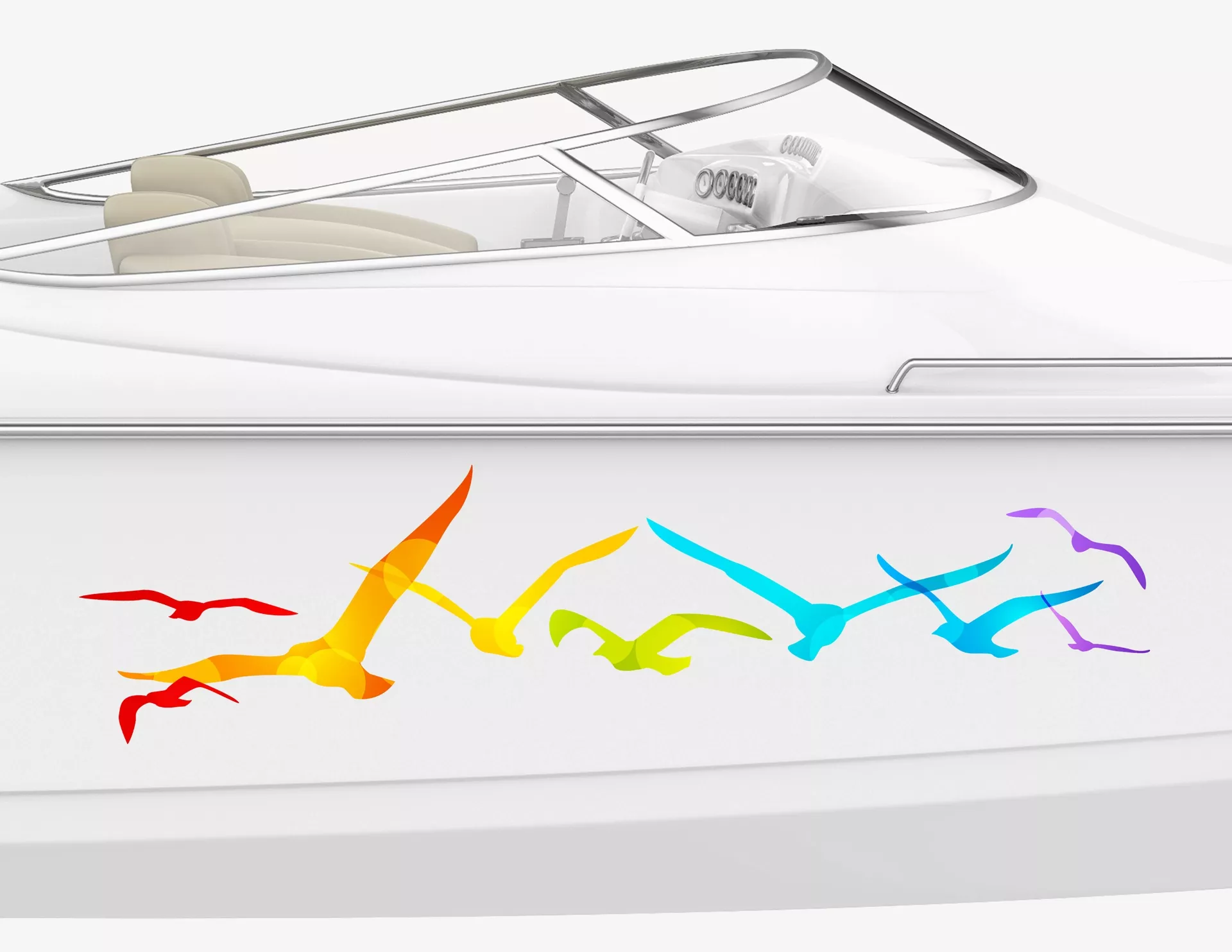 Infos & FAQ für Bootsaufkleber Regenbogen Möwen